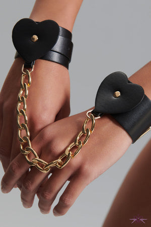 Take your lingerie ensemble to the next level with the Bluebella Salome Cuffs. Made from leather-look material and adorned with gold hardware, these cuffs are not just an accessory but a call to embrace your sensuality. Add them to your collection and complete the look with the matching bra, briefs, and choker.