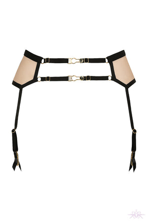 A gorgeous suspender belt from the Insoutenable Legerete collection from Atelier Amour. It has beautiful pure lines in a fine and transparent nude skin coloured tulle which underline the body. It comes with very soft seamless finishings and close with golden clips and golden buttons at the back. Matching items are also available.