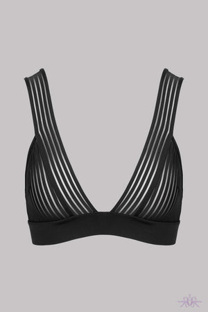 A lovely triangle bra made with soft light fabric from the new collection at Maison Close. This bra is semi-sheer and has graphic detail to enhance the bust. It has wide adjustable shoulder straps and a deep band under the bust. Matching thong and naked breast bodice are also available.