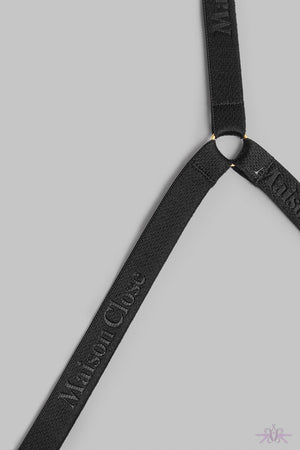 An alluring naked breast bra from Maison Close. This open bra in a black colour has no under wiring and features soft tulle with a sheer iridescent appearance.