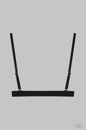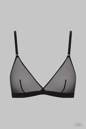 A sheer triangle bra from the Corps a Corps collection at Maison Close. This bra has no under wiring and features soft tulle with a sheer iridescent appearance.