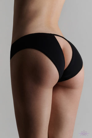This lovely open panty from Maison Close is so soft and easy to wear. It has open sections to the front and rear. Matching cupless bra and suspender belt are available.