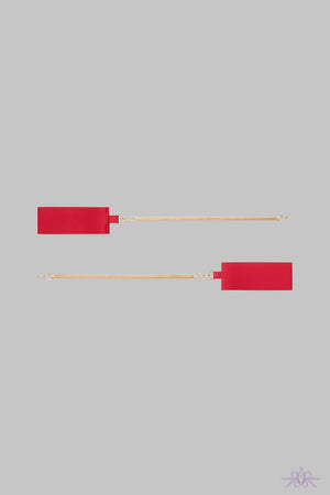 A sensual pair of removable handcuffs from the Tapage collection at Maison Close. They have gold chains and microfibre straps. They easily and endlessly attach and detach to suit the desire. they can be attached to each other or to other pieces in the collection.