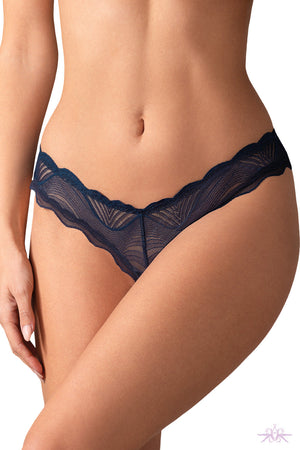 Conquer the night with confidence in the Obsessive Nightly Crotchless Thong. Made from transparent, delicate lace in a stunning blue-in-blue color, this thong is both bold and comfortable. Its seductive crotchless design adds a daring touch.