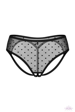 Indulge in seduction with the Obsessive Nuites Crotchless Pants. These stylish black pants feature an elegant sheer fabric with polka dot design, offering both comfort and allure. The wide waistband adds a subtle decorative touch, while the open crotch invites bold exploration. Perfect for those who are bold and daring.
