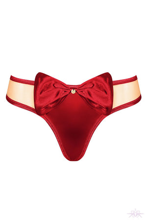 A beautiful sensual red and nude satin thong wit a satin bow from Obsessive.