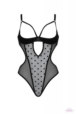 A seductive open cup bodysuit from Passion lingerie brand. The open, underwired cups combined with straps surround the breasts and there are cutouts that slim the figure. The charming dot design and the high quality soft material make this bodysuit a lovely choice.
