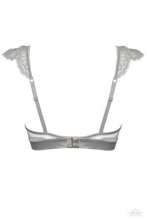 A luxurious triangle bra with a gorgeous combination of sumptuous lace and satin. This bra has triangle cups that enhances the natural curve and shape of the bust. The wide satin band below the bust adds support and the adjustable shoulder straps and hook and eye fastenings enable the perfect fit. There are Swarovski crystals in between the cups which provide an element of glamour. Matching items are available and it is also available in black.