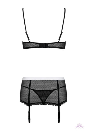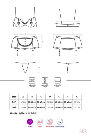 This five-piece set includes a bra with underwired cups for a perfect bust, adjustable straps and back for a flawless fit, a garter belt with a charming apron, and fishnet stockings. With charming details like a shiny bow, pearls, and lace, this costume will make you the center of attention.