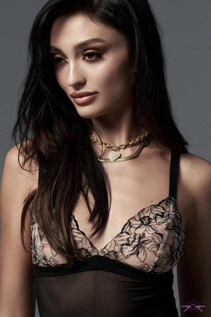 Discover timeless elegance with this long chemise, featuring a sheer elastic mesh construction that drapes beautifully. Soft tulle cups showcase intricate floral embroidery for delicate sophistication. Crafted from luxurious fabrics this feels wonderfully soft against the skin. Adjustable straps ensure a customised fit, while the exposed back adds an alluring finishing touch. A perfect blend of comfort and refined style.
