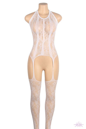 Unleash your inner confidence with the YesX White Floral Fishnet Bodystocking, designed to flatter and seduce. This daring one-piece features a sensual halter neck and an intricate floral lace pattern, combining elegance with bold allure.