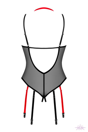 The Glandez teddy from Obsessive has an open cut and is made of transparent fabric, a combination that add excitement to your lingerie drawer. The sheer fabric will truly highlight the curves and is so soft to the touch. There are eight suspender straps that can be detached when required. The shoulder straps are also adjustable and the red strap can be removed. A spicy piece to add compliment your favourite stockings.