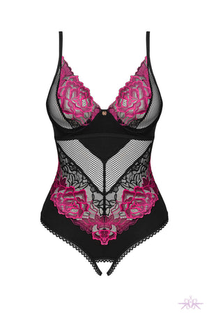 A gorgeous black bodysuit with a seductively open crotch will excite the senses. The lovely soft material will wrap your body in comfort and enhance your figure.