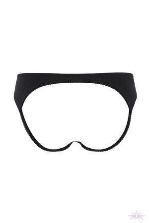 This gorgeous open shorty from Maison Close is part of the Petit Secret Collection, which includes little accessories that make a big statement. The shorty is a traditional-cut shorty with an open framework back. Matching cupless bra and suspender belt are available, to make the set complete.