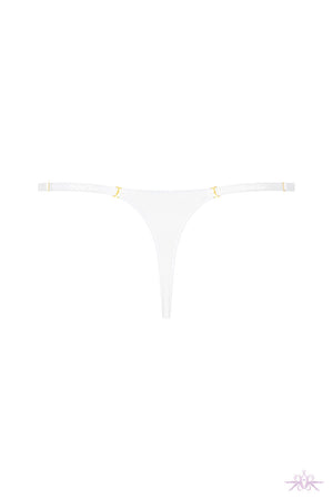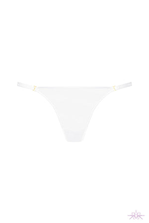 A simple white mini thong from the Corps a Corps collection at Maison Close. It features soft tulle with a sheer iridescent appearance.