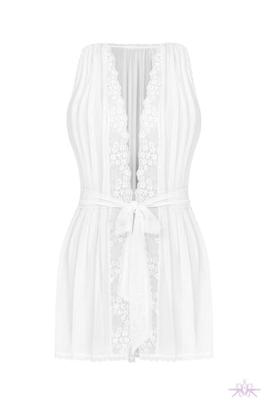 A gorgeously seductively sheer short peignoir that is light and delicate to wear. The airy, transparent mesh is combined with floral lace, and a subtle belt emphasizes the waist.