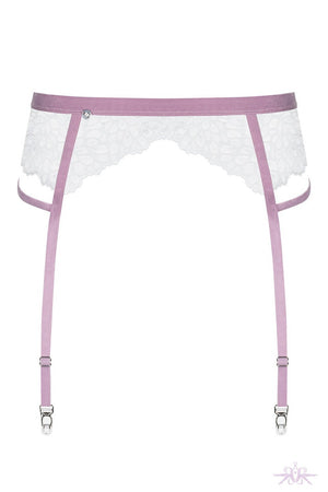 An elegant and chic suspender belt that will entice the senses. The belt has a classic cut that enhances your shape with lovely elastic lace. The waistband is lilac velvet along with the four adjustable garter straps which decorate the body temptingly. The stockings are not included but are available.