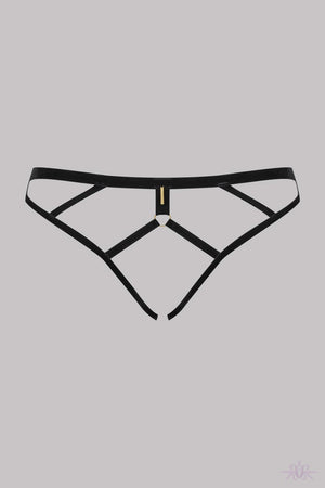 A luxurious velvet open Panty from the Le Fetiches Collection at Maison Close. The panty is adorned with an irresistible golden jewel at the front and can be worn with other le fetiches items to complete the look.