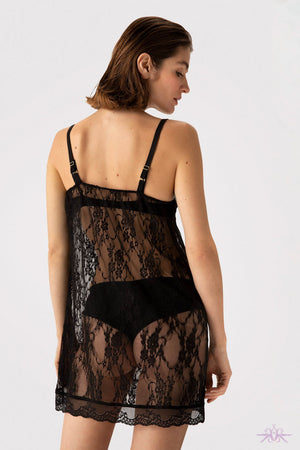 Introducing the Fiore Prelude Chemise, a longer length chemise with a romantic floral motif lace top. With adjustable straps and body-friendly elastic lace, this chemise offers both comfort and sensuality. Made from exclusive European fabric and sewn locally, it's a must-have for intimate evenings.