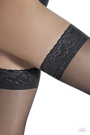 A luxurious pair of holds up with a delicate 'French lace' top, from Le Bourget. These classic 15 denier sheer hold ups are a lovely choice for everyday and evening.
