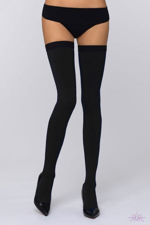 A fabulous opaque hold up for the cooler days from Pierre Mantoux. These 70 denier hold ups are microfibre and are so comfortable to wear, a signature of this brand. The narrow plain top band holds them firmly in place due to the silicone. Available in blue or black.
