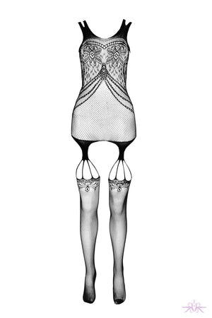 A crotchless fishnet bodystocking that will fit the figure beautifully and enhance your curves. It is a fine fishnet design with a gorgeous effect of a top and stockings. The open back with cross straps and delicate straps like suspenders make this a prefect all in one piece. It is very comfortable to wear. Bodystockings are perfect for lingerie under clothing or worn on their own.