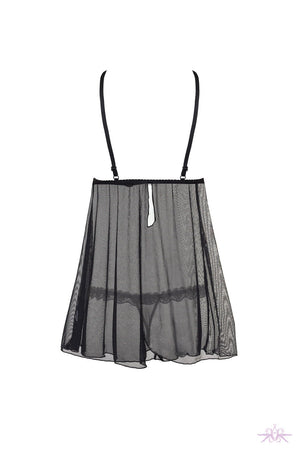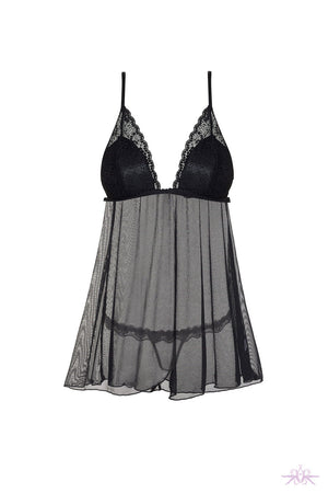 Embrace your bold side with the Beauty Night Lauren Chemise, a seductive blend of sheer tulle and intricate lace. Featuring sculpted cups and adjustable straps, it promises a flawless, tantalizing fit. Paired with a matching lace-trimmed tulle thong, this set radiates daring sophistication and irresistible charm.