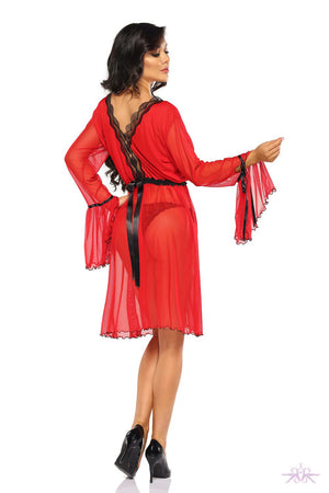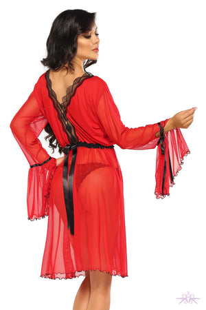 Unleash your inner goddess with the luxurious and sensual Valentina peignoir. It features a flowing sheer fabric that drapes beautifully over your body, creating a seductive silhouette. The deep V-neckline and back, adorned with delicate black lace, add sophistication to this must-have lace robe. Made with lightweight, breathable mesh for maximum comfort.