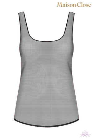 A truly elegant sheer tulle tank top from the Madame Reve collection at Maison Close. This minimalist top is very comfortable to wear due to its soft fabric. It can be worn on its own or over your lingerie sets. Matching brief is also available.