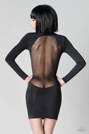 A beautiful seductive long sleeved dress from Maison Close, made from gorgeous ultra soft stretch microfibre, with added sheer mesh to the back. It is just perfect for nightwear or outerwear if preferred.