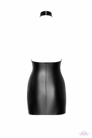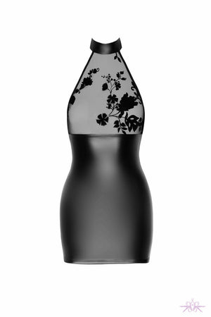 A gorgeous halter neck dress with a sheer wildflower flocked mesh top and a seductive wetlook bottom to accentuate your curves. With a neck hook closure and hidden back zipper, you will really showcase your inner eroticism in this dress.
