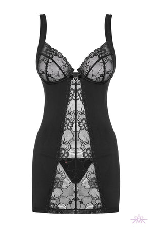 The Heartina chemise is a seductive chemise in black with a flowery lace design.It comes complete with a mini thong.