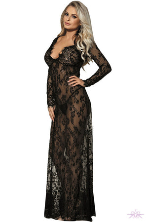 Unleash your daring side with our YesX Black Long Nightdress. This beautiful lace nightdress gown, complete with enchanting floral design and delicate eyelash lace detailing, will make you feel bold and confident. The matching thong adds an extra touch of allure.