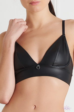 An alluring wired bra from the Chambre Noire collection at Maison Close. This opaque piece features an imitation leather material and delivers an irresistible V-neckline thanks to its triangle cut. Inspired by "fetish chic", the limited edition Chambre Noire collection will liberate even the best behaved.