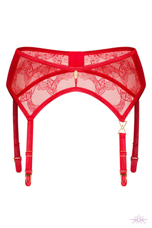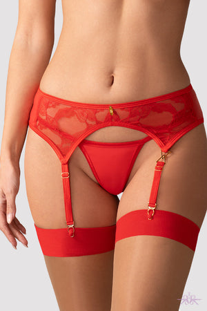 Experience the perfect balance of daring and elegance with the Obsessive Aliosa Garter Belt. Love is in the air with this suspender belt made from luxurious lace and adorned with bold red trim and opulent gold details. Featuring a multi-stage hook-and-eye fastening for a flawless fit and unbeatable comfort.