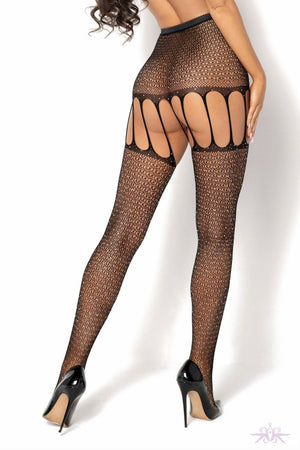 A seductive suspender tight in fishnet to excite the senses. This alluring piece is adorned with crystals. The deep faux suspender belt is so feminine and the multi straps attached to the stockings are so fancy.
