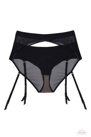 A sophisticated, but highly seductive highwaist brief from the Charlie collection at Playful Promises. This sensual brief is sleek black satin and features sheer panelling and cut out detailing. It has detachable suspender straps so you can attach your favourite stockings but it also can be worn as a brief only. This set is a gorgeous boudoir essential and can be matched with the Charlie bra.