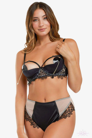 Sensational and powerfully seductive, the Anaise Quarter Cup Bra features soft lace detailing and satin panels to frame your cleavage for a harness effect. The Quarter Cup design can be matched with a pair of our nipple pasties to complete the look. Featuring a Hook and Eye adjustable closure at the back for a superior fit and adjustable shoulder straps. Matching items from the Anaise range are also available.