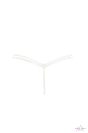 A beautiful string thong in ivory with delicate lace detailing. The guipure lace front triangular section softens the directional line of the banding whilst a central diamante elevates the piece with a touch of sparkle on both the front and back of the waistline. Wear with the matching bra and suspender belt for the ultimate contemporary lingerie look.