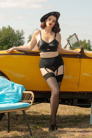 A glamorous pair of seamed stockings with stretch nylon and elastane for ease of fit. They have a beautiful translucent black leg, with a contrasting point heel, welt and seam in black. They are 15 denier and made with a blend of nylon and elastane for a comfortable modern fit.