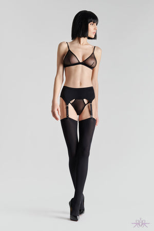 These French designed stockings, from Maison Close, are 70 denier and are some of the most beautiful we have seen. Opaque stockings are quite rare, and even more so with the 'cut and curled' stocking top.