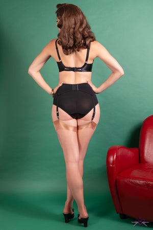 Their subtle shimmer complements both everyday elegance and after-dark allure, while the nearly invisible toe lets your pedicure steal the show. The deep, glossy welt inspired by classic styles ensures a secure fit with suspenders and delivers a bold retro edge. Stretchy and smooth, these stockings move with you, perfect for turning heads whether you’re in a pencil skirt or boudoir attire. Shine boldly and own your style with these daring, glossy essentials.