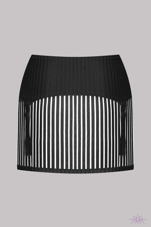 This lovely skirt from the Bande à Part collection at Maison Close is simply divine. The soft light fabric feels so decadent against the skin and the graphic lines add style creating that semi-sheer look. It has four removable and adjustable suspender clips. Matching thong, triangle bra and stockings are also available.