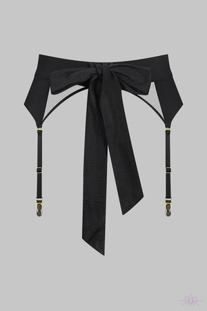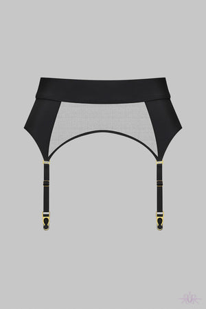 A seductive suspender belt from the wonderful Madame Reve collection at Maison Close. The gorgeous opaque microfiber and sheer mesh of this wide stretch belt sit beautifully on the body. There is a removable mesh necktie which tucks through the two back loops for a neat look or can be used as the mood takes you.