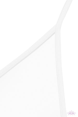 The Maison Close Pure Tentation white triangle bra reveals your curves with daring elegance. Its sheer tulle meets opaque microfiber cutouts for a seductive contrast. Wireless and crafted with bust darts, it contours like a second skin for a flawless, natural fit. Adjustable thin straps and a discreet hook-and-eye closure ensure comfort and ease. Wear it solo, layered, or paired with any piece from the Pure Tentation line to express your bold allure.