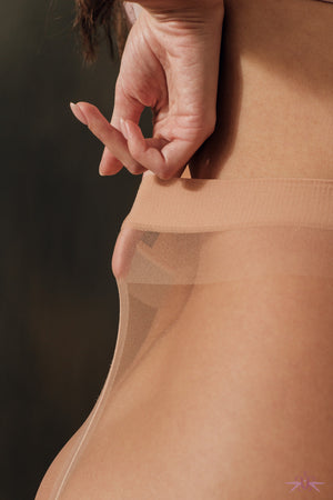 NATURAL GLOW are the first tights that don't distort your natural skin tone, but rather emphasise it. ONE perfect variation for ALL skin colours. Made from thread which gives your legs a tender shimmer. An almost transparent thread ensures a thoroughly natural look for any skin tone and gives your legs a light shimmer.
