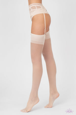 The designers at Veneziana have produced a lovely pair of everyday stockings. They are sheer at 15 denier and have a matte appearance. Available in three colours black, natural and navy.