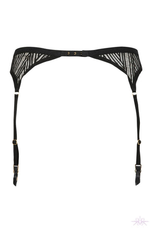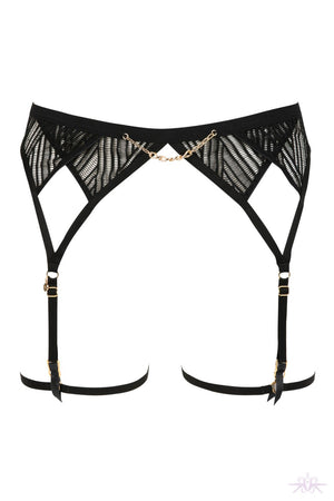 A beautiful suspender belt in graphic lace from the new Atelier Amour collection. The cross lace cut outs on this belt accentuate your hips and the gold chain at the waist enhances the piece. The integrated elastic garter straps can be removed so as the belt can be worn with stockings. Matching items are also available to complete the look.