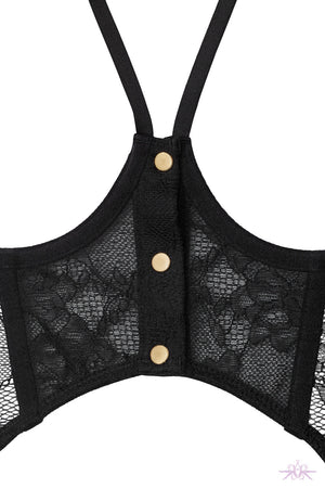 Maison Close's Jeux Magnétiques Open Suspender Bustier is a masterclass in provocative elegance. Crafted from delicate floral lace, this audacious piece features an open underwired design that reveals and tantalises with a single touch—thanks to ingenious golden magnetic buttons at the front. Adjustable neckline elastics mould to your body for a custom fit, whilst supportive straps keep everything perfectly in place. The removable suspenders offer versatility, pairing seamlessly with the matching mini-thong and garters or other hosiery from the collection. Unapologetically seductive, this bustier transforms anticipation into an art form.