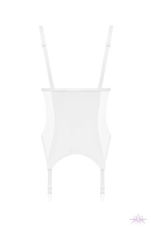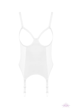The Maison Close Pure Tentation white open garter bodysuit boldly blends sheer tulle with opaque microfiber to sculpt a daring silhouette. Featuring underwired support and adjustable straps for a perfect fit, its open front commands attention with confident exposure. Non-removable, adjustable garters add seductive versatility, whether paired with stockings or worn solo. Designed to tease and empower, this bodysuit challenges the boundary between lingerie and performance, perfect worn alone or layered with matching Pure Tentation pieces.